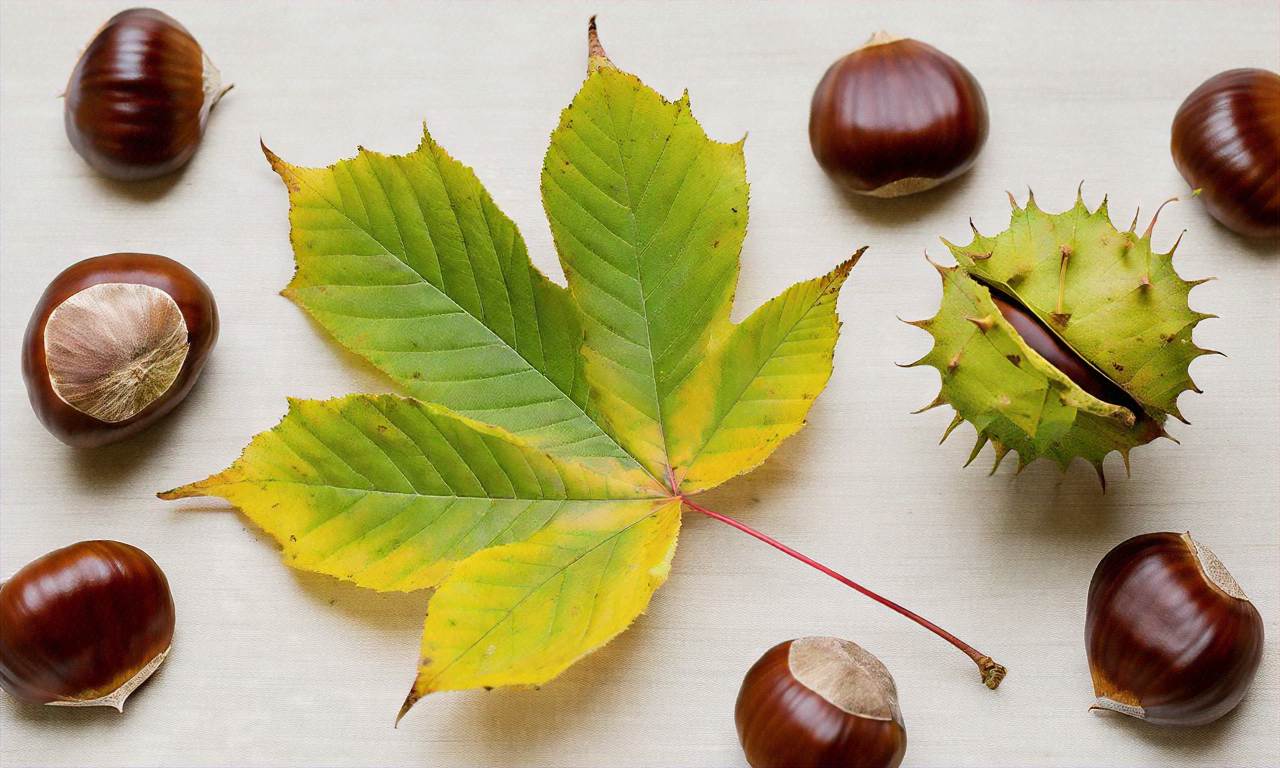 – kasztany, żołędzie, szyszki